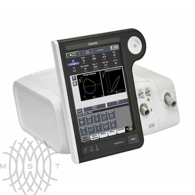 Philips Respironics V680 — аппарат для палат реанимации и интенсивной терапии с возможностью комфортного для пациента и относительно нетрудоемкого для персонала перевода с инвазивной на неинвазивную искусственную вентиляцию.