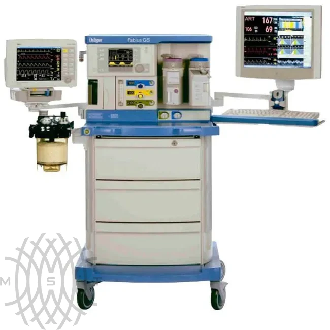 Наркозно-дыхательный прибор Drager Fabius GS - представляет собой устройство для анестезии, использующееся при выполнении хирургических операций. Прибор предназначен для проведения всех современных методов анестезии у взрослых и детей, включая ингаляционную с низкими потоками. К тому же оно рассчитано для работы на все периоды операции: предоперационный, операционный и послеоперационный.