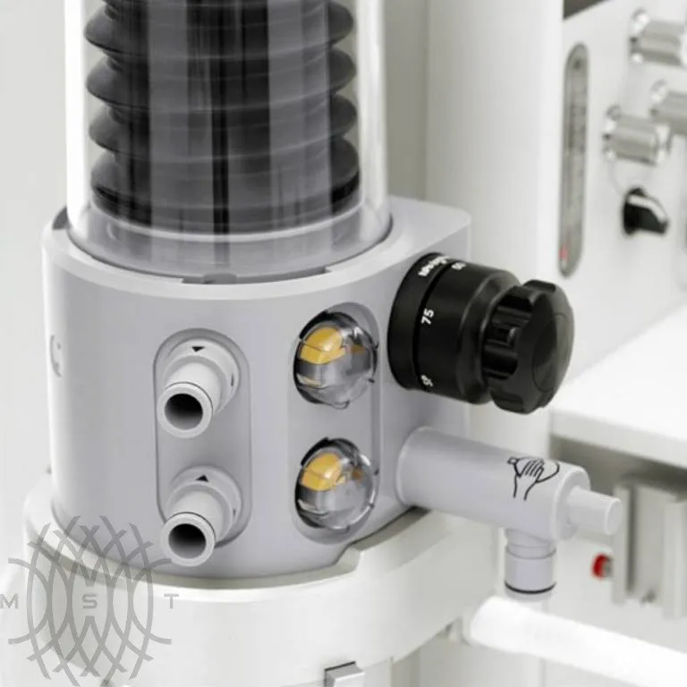 - Подача свежего газа переключается между дыхательной системой и дополнительным выходным газовым штуцером.