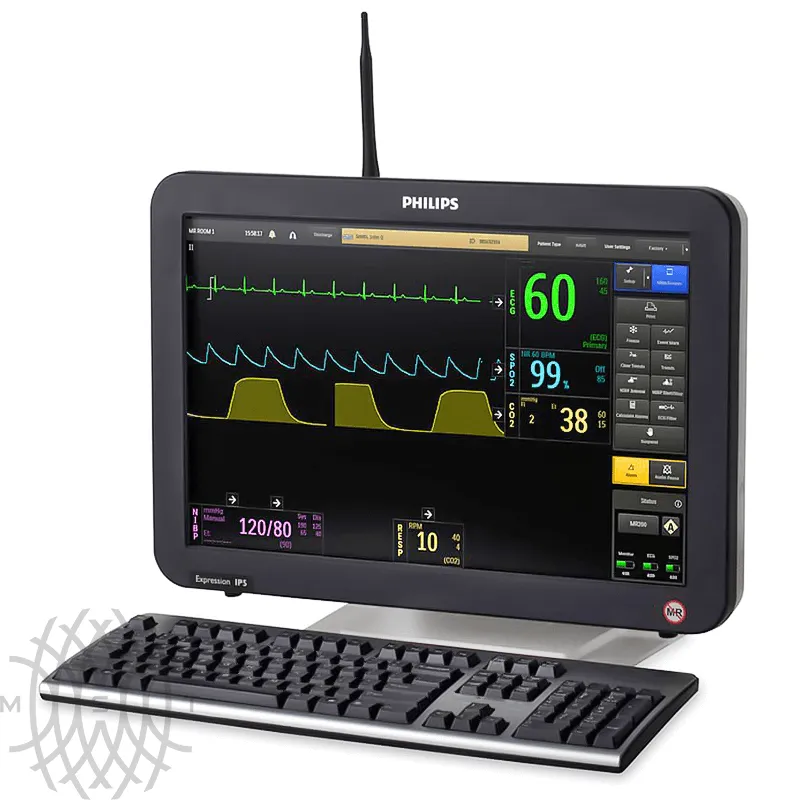 Philips Expression IP5 монитор пациента представляет собой информационный портал для отслеживания состояния больного и дистанционного наблюдения за ним. Прибор измеряет и предоставляет информацию о жизненно важных показателях, выводя ее на яркий и контрастный 19-дюймовый дисплей с широким углом обзора.