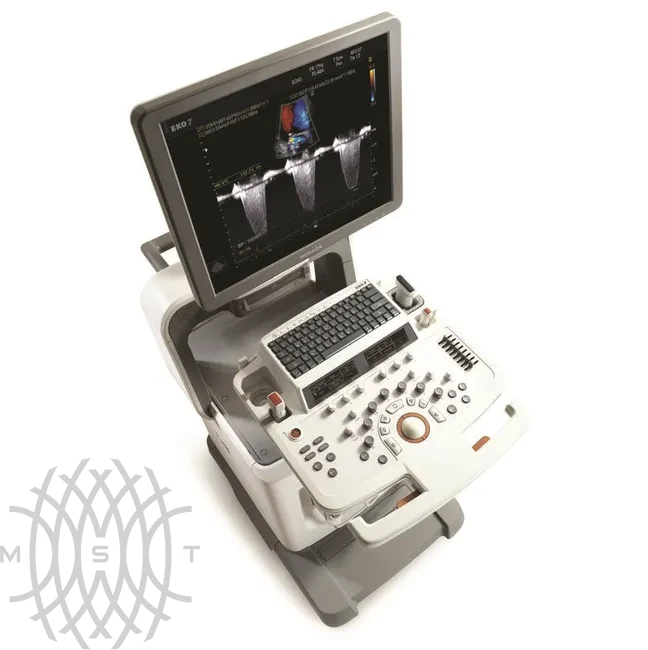 • Сканер EKO7 (монитор 19"; встроенные модули: цветного, энергетического, направленного энергетического и импульсно- и постоянно-волнового допплера, тканевая гармоника, SonoView; кинопамять; встроенный дисковод DVD-RW; USB-порты, встроенная клавиатура с подсветкой и трекболом);