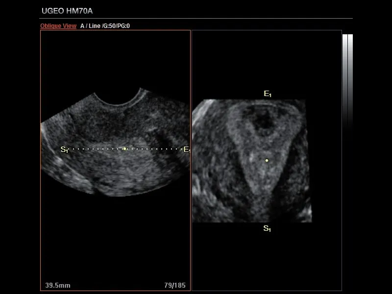 - Модуль Labor Assist — автоматическое, в одном касание клавиши, измерения и занесения в отчет угла прогрессии, отражающего положение головы плода во втором периоде родов.