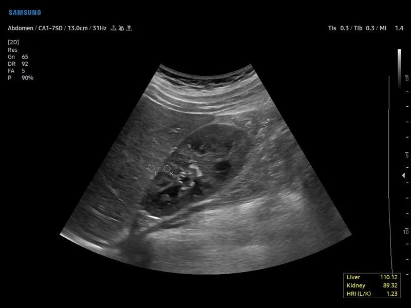 - Исследование органов брюшной полости (печень, желчный пузырь, поджелудочная железа, селезенка).